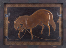 蒔絵神馬。3代将軍徳川家光が寄進した絵馬。家光の父2代将軍秀忠も絵馬を寄進しており、これらは徳川家の篤い信仰の証でもある。
