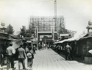 新本堂は、昭和26年(1951)に起工。天皇陛下より金一封を拝領し、ご信徒の熱意あふれる協力も得て、7年後の昭和33年(1958)、無事に落成を見た。また昭和35年(1960)には、松下電器産業(現パナソニック)社長・松下幸之助氏の寄進により、慶応元年(1865)の焼失以来95年ぶりに雷門が再建され、昭和39年(1964)には大谷重工業・大谷米太郎ご夫妻の寄進により、宝蔵門が再建された。