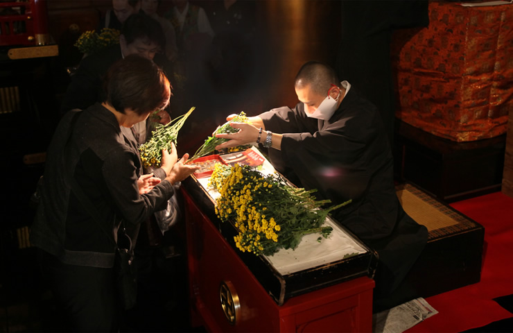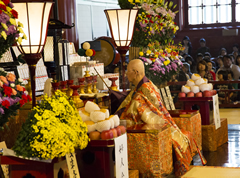 浅草寺の菊供養会は、奥田貫昭貫首の法話「観世音菩薩と菊慈童」をきっかけとし、明治31年(1898)より始められた行事である。