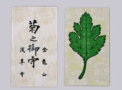 中国の故事に由来する、この日に限り授与される「菊のお守り」には、延命長寿のご利益がある。