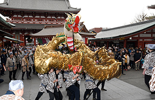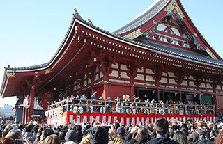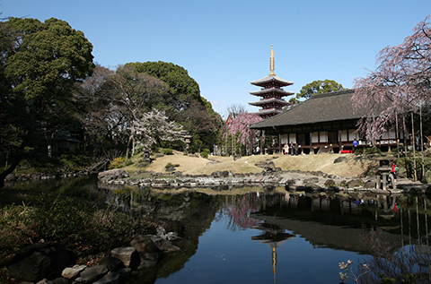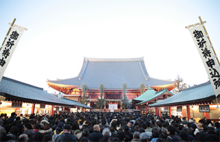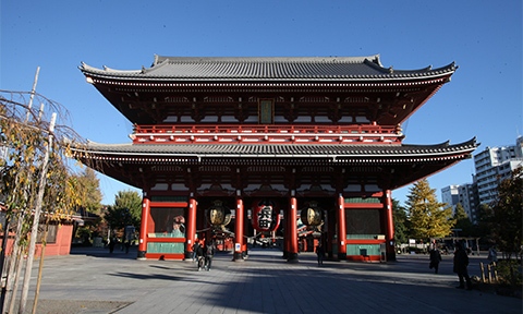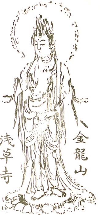 Senso-ji is the oldest temple in Tokyo. Known throughout Japan, it is the temple of Avalokitesvara Bodhisattva (Sho Kanzeon Bosatsu), who embodies the mercy of all Buddhas. This important center of religious faith draws 30 million worshippers every year. History of Senso-ji Early in the morning on March 18, 628, when the capital of Japan was in Asuka, in what is now a part of Nara Prefecture, Hinokuma Hamanari and his brother Takenari were fishing in the Sumida River. Bringing in their net, they were surprised to see that it held one statue . When Haji no Nakatomo, village headman of what is now Asakusa, realized what they had was a statue of Avalokitesvara Bodhisattva (Sho Kanzeon Bosatsu),Kannon called usually.he devoted himself to Buddhism. He remade his house into a temple soon and devoted the rest of his life to worship and holding memorial services for this Kannon. In 645, a Buddhist priest named Shokai came to this region and built a hall for the Kannon. Following a revelation he received in a dream, Shokai decided to hide the statue from view. Since that time, it has remained never unveiled. Asakusa at the time was a small fishing village located in an estuary of Tokyo Bay in the vast wilderness of the area known as Musashino. It grew and flourished as people arrived in increasing numbers to worship. When Ennin (794-864), head priest of Enryaku-ji (the main temple of the Tendai School of Buddhism) visited Senso-ji in the mid-ninth century, he created a statue identical to the main image (absolutely Hibutsu) so that it could be shown rarely to the public. During the Kamakura Period (1185-1333), the Shoguns demonstrated great devotion to Senso-ji. Gradually, other prominent figures, including military leaders and literati, followed their example, and the temple’s importance increased. In 1590 Tokugawa Ieyasu, the first Tokugawa Shogun, designated Senso-ji as the temple where prayers of the shogunate would be offered. After that the successive Tokugawa Shoguns had often visited Senso-ji and the belief in Kannnon of the Senso-ji had spread among common people during the Edo Period(1603-1867). As from the end of the 18th century through the 19th century Edo city developed into the largest population city in the world , the culture specific to Edo flowered and Asakusa had become the cultural center in Edo. In the modern times Asakusa has been the popular culture center such as theater,movie,music and vaudeville. Senso-ji is the oldest temple in Tokyo and also called Asakusa Kannon because it houses the Kannon, It is known throughout Japan. This important center of worship draws 30 million visitors every year. Fishermen find a statue of Bodhisattva Kannon in their net. (Source: Senso-ji Kambun Engi Emaki, historical picture scroll of the Kambun Period) Kannon, Bodhisattva of Mercy Sacred Avalokitesvara Bodhisattva (Sho Kanzeon Bosatsu), Principal Image of Senso-ji Yanagi-no-Miei (A Treasure of Senso-ji)Bodhisattva Kannon statue sculpted by Ennin (Jikaku Daishi) The temple’s principal image is the Sacred Avalokitesvara Bodhisattva, who is known for being the most compassionate, and for relieving suffering and answering prayers with great benevolence. Avalokitesvara Bodhisattva, commonly called Kannon, can change forms. Bodhisattva Kannon appears in countless forms such as Juichimen (11 faces), Senju (1000 hands), and Nyoirin (wish-granting jewel and Dharma wheel), all of which are based on Avalokitesvara Bodhisattva with one face and two hands. In the Main Hall (Kannon-do), there are two masterpieces of calligraphy by Noguchi Sekko, one of the Three Best Calligraphers of the Edo Period (around 1800). They were hung on each side of a large offertory box. The words are quoted from Hanjusan, written by Shan-tao (Zendo Daishi), an influential writer of the Pure Land School of Buddhism during the Tang Dynasty in China. They express the compassionate mind of this Bodhisattva Kannon, who treats everyone equally and with great benevolence. Since renowned Buddhist priest Shokai decided to hide the Kannon statue from view in 645, it has been stored in a gorgeons zushi(miniature temple) with multiple locks which have prevented even the chief priests of Senso-ji from viewing it. *To pray at the main hall, place your hands together in the Buddhist prayer position and chant “Namu Kanzeon Bosatsu, or “I place my trust in Bodhisattva Kannon.” Visit Main Hall (Kannondo Hall) Yogodo Hall <Goshuin-jo (place to receive stamps from the Scarlet Seal of Senso-ji> Awashimado Hall Five-Storied Pagoda Denboin and Its Garden [National Scenic Beauty Site] Niten-mon Gate [Important Cultural Property] Hozo-mon Gate (commonly called Nio-mon Gate) Kaminari-mon Gate (Furaijin-mon Gate) Nakamise Shopping Street Bentendo Hall Main Hall(Kannondo Hall) Built by the 3rd Tokugawa shogun, Tokugawa Iemitsu, and designated a national treasure, the Main Hall was destroyed in the Great Tokyo Air Raid on March 10, 1945. It was rebuilt in 1958 with donations from followers all over Japan. The immediately apparent characteristic of the Main Hall is its dramatically sloping roof that is quite tall compared to that of other temples. This hall is divided into the naijin (inner sanctum) and the gejin (outer sanctum). Senso-ji’s principal image, the Bodhisattva Kannon, sits in a miniature temple in the middle of the naijin. Yogodo Hall A group of Buddhas that follow the teachings of Bodhisattva Kannon and support the deity’s enlightened activity is called Yogoshu. Eight Buddhas are enshrined in Yogodo Hall, each of which protects one or two animals of the Chinese zodiac. In the Chinese zodiac, each of the years in the 12-year cycle is represented by an animal. The Buddha that protects each animal is also thought to protect those born in the year of that animal. Stamps from the Senso-ji Scarlet Seal are available here. Awashimado Hall Awashimado Hall was built during the Genroku Period (1688-1704) to enshrine Awashima Myojin,