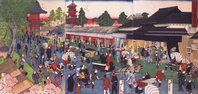 大正年間の「東京名所浅草観音之風景」に描かれた仲見世。