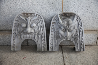 | 屋根瓦 | ![]() ※なお、旧塔の三層西南の稚児棟の羊角猿面瓦は、新塔でも旧塔に模して葺かれている |