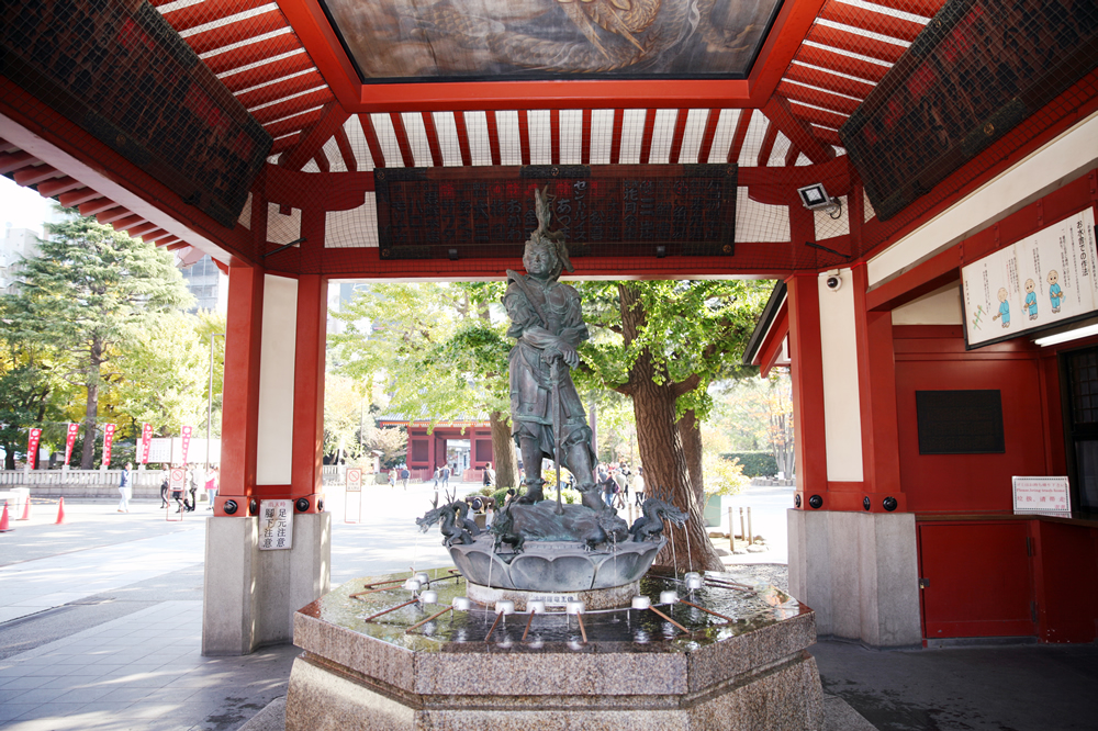 天井には「墨絵の龍」(東 韶光 画)、八角形錆御影石造りの手水鉢の上に、かつて本堂裏にあった噴水に安置されていた高村光雲作の龍神像(沙竭羅龍王像)をまつる。
