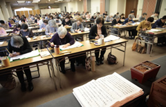 ~かんのんさまの教えをご一緒に写しましょう~ 4月~10月まで(8月はお休み)全6回、木曜・金曜の午前と午後のクラスに分かれて各月1回五重塔信徒室にて『観音経』を浄書する会です。 受付は年1回3月上旬。年会費は13,000円。